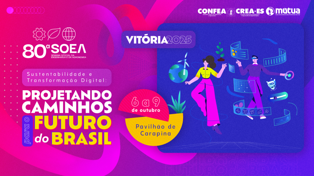 Em 2025, a 80ª edição da Soea será realizada de 6 a 9 de outubro, no Pavilhão de Carapina, em Vitória/ES. O tema desse ano é “Engenharia, Agronomia, Geociências, Sustentabilidade e Transformação Digital: Projetando Caminhos para o futuro do Brasil”. Uma excelente oportunidade para demonstrar as evoluções da área tecnológica, dos profissionais e da representação profissional do Sistema Confea/Crea e Mútua.